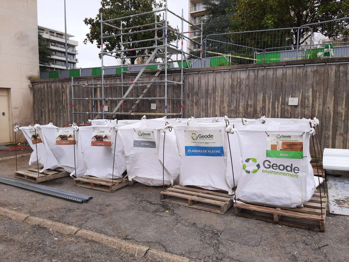 Sur chantier, tous les déchets sont à triés à la source en vue d’atteindre le plus haut niveau de valorisation et de limiter au strict minimum le recours aux bennes de DIB. Nous utilisons notamment des big bag spécifiques à chaque typologie de déchets et privilégions les transporteurs et centres de tri locaux.
